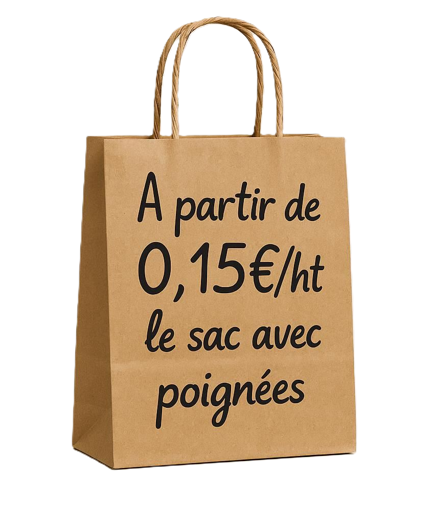 Prix indicatif pour un sac kraft personnalisé, impression 2 faces monochromes avec poignées torsadées et de dimensions 21x14x27cm